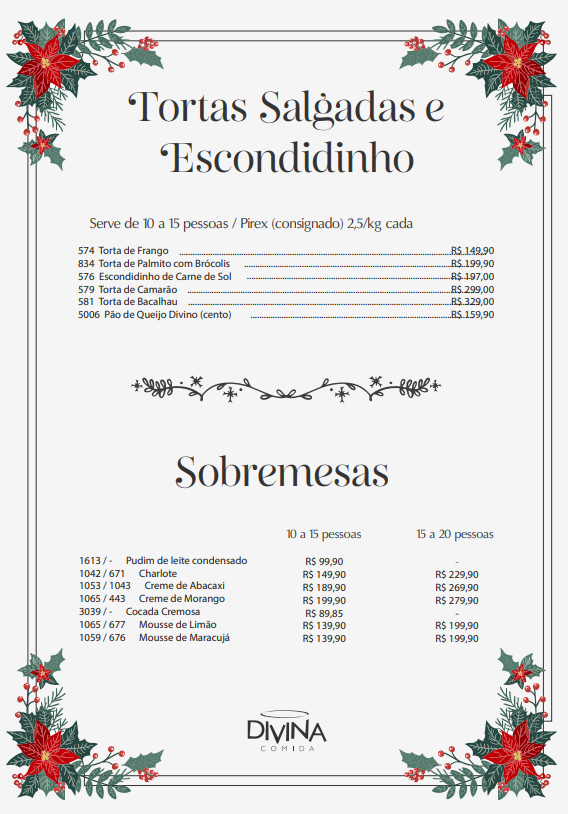 O Divina Comida está pronta para tornar sua festa um sucesso através das nossa delicias. Faça agora sua encomenda.